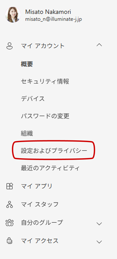 - ナビゲーションより [設定およびプライバシー] をクリックします。